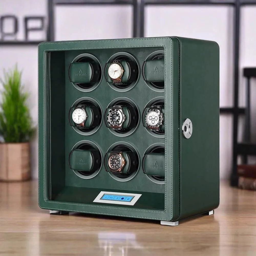 ملفاف ساعة أوتوماتيكي 9 مصنوع من الجلد الناعم باللون الأخضر الداكن