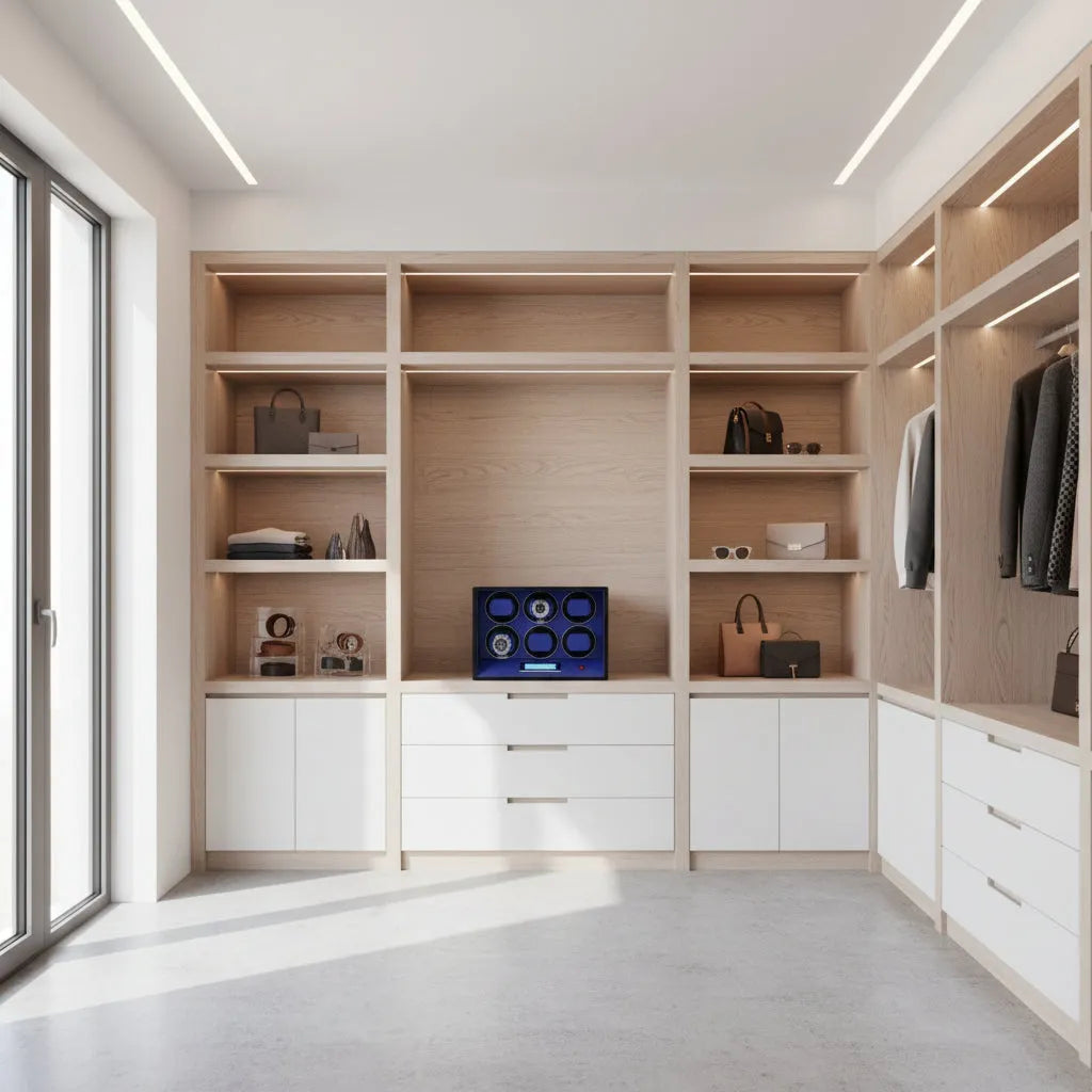 Perfect for putting inside your safe, or hidden away in a wardrobe. Power supply will be needed inside safe to run the watch winder. A simple small drill hole in the side of the safe will allow power access, then your watches are safe and wound ready to wear.