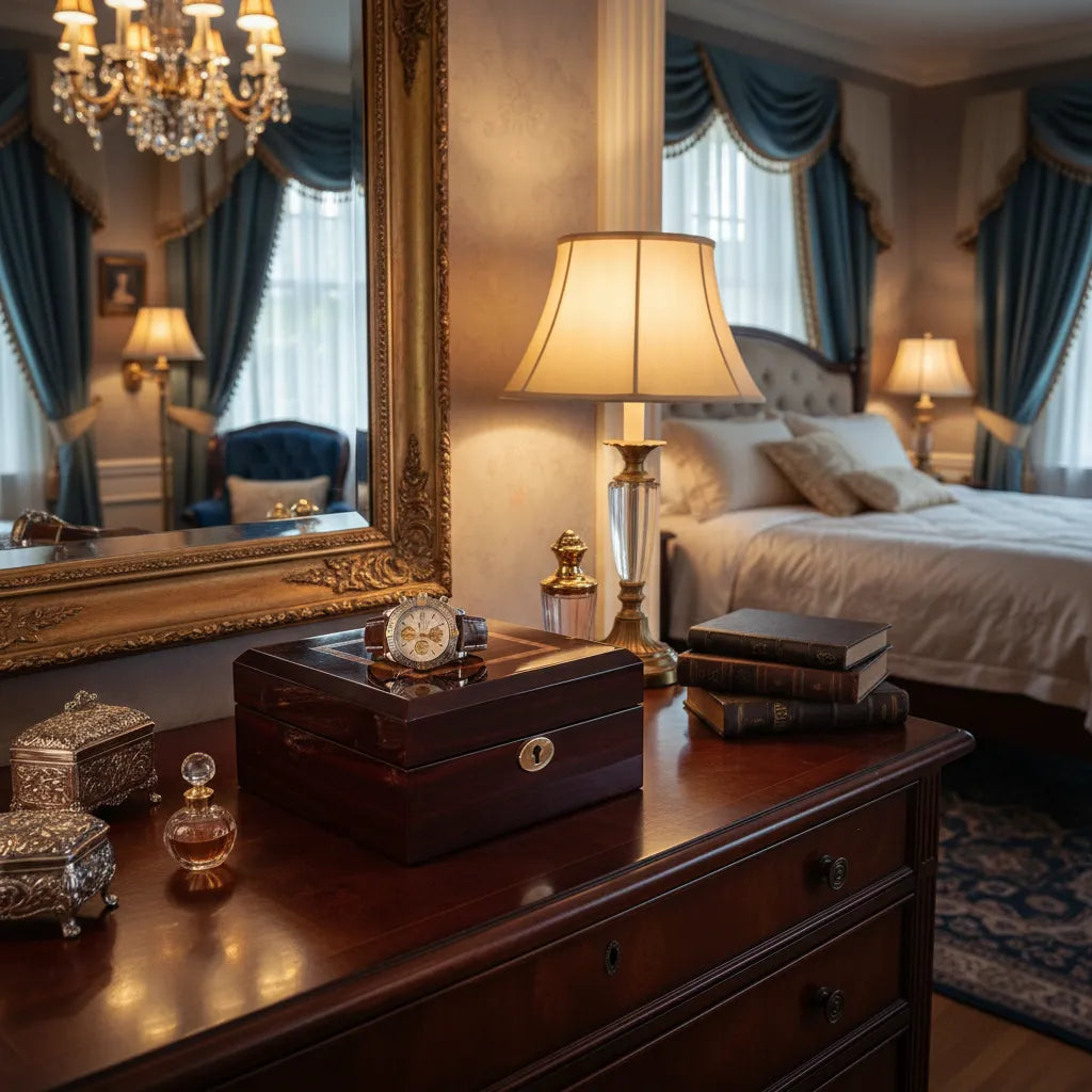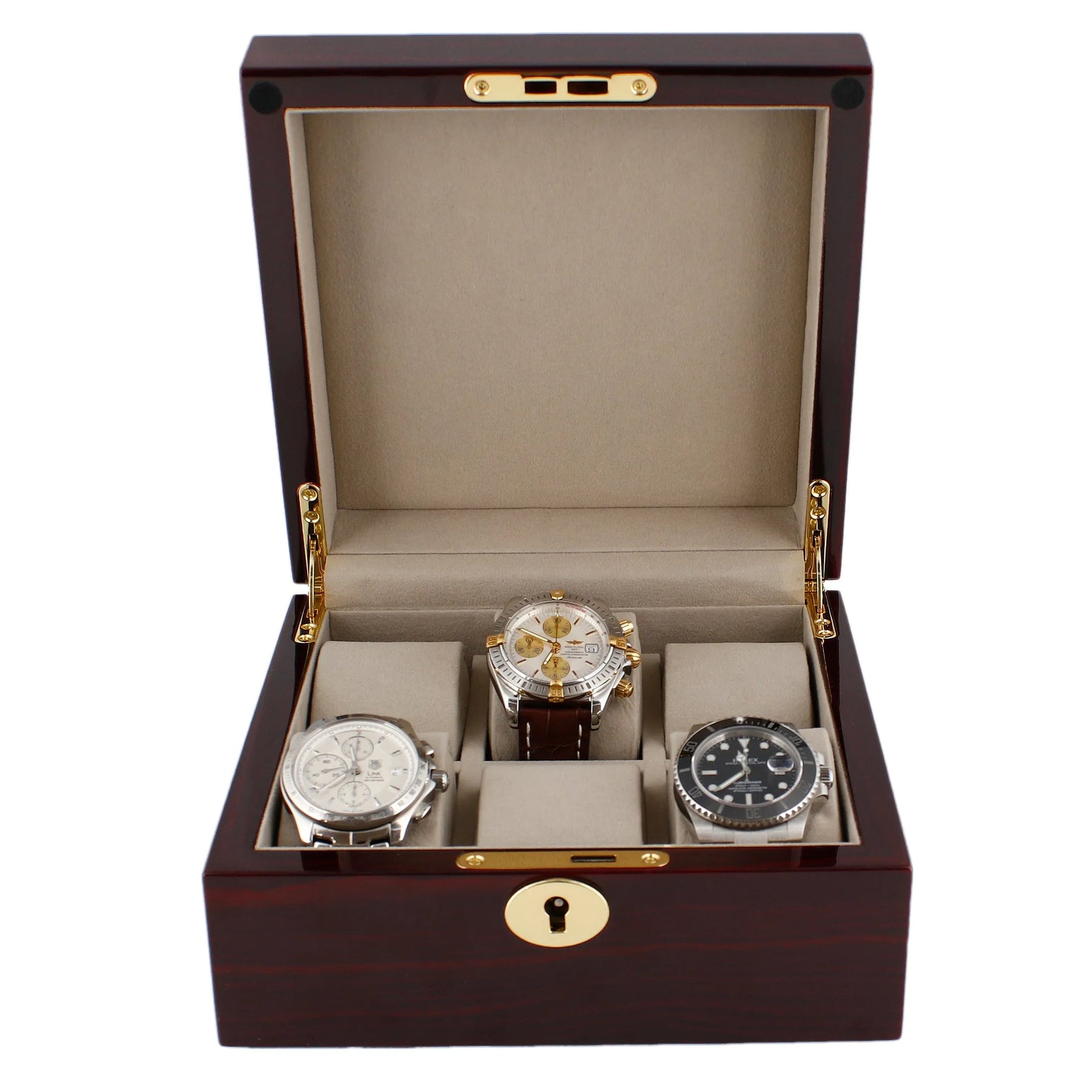 Premium 6 Watch Box in Cherry Wood Piano Gloss Finish with Luxury Lining