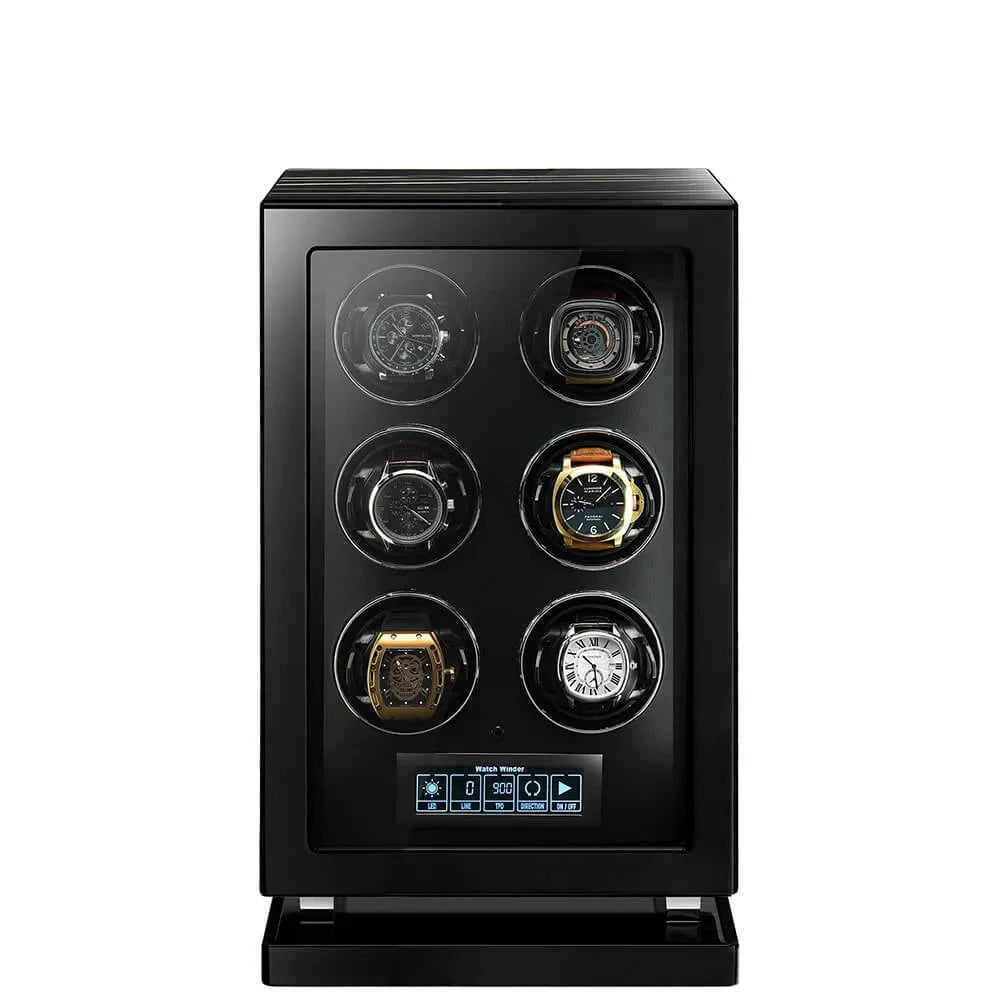 For collectors whose passion has led them to amass a slightly larger, yet still curated, selection of timepieces, the Premium 6 Watch Winder in Zebrano Ebony Wood Piano Lacquer by Aevitas offers an expanded capacity. This model masterfully balances increased accommodation with the unwavering commitment to style and superior functionality that defines the Aevitas brand. Echoing the superior engineering of its smaller sibling, it features robust German motors and the same exquisite Zebrano Ebony Wood Piano Lacquer finish. The true versatility of this winder lies in its programmable rotation routines, offering multiple precise Turns per Day (TPD) settings and directional options. This ensures comprehensive compatibility with virtually all automatic watch brands available on the market today, from the most robust divers to the most delicate dress watches.