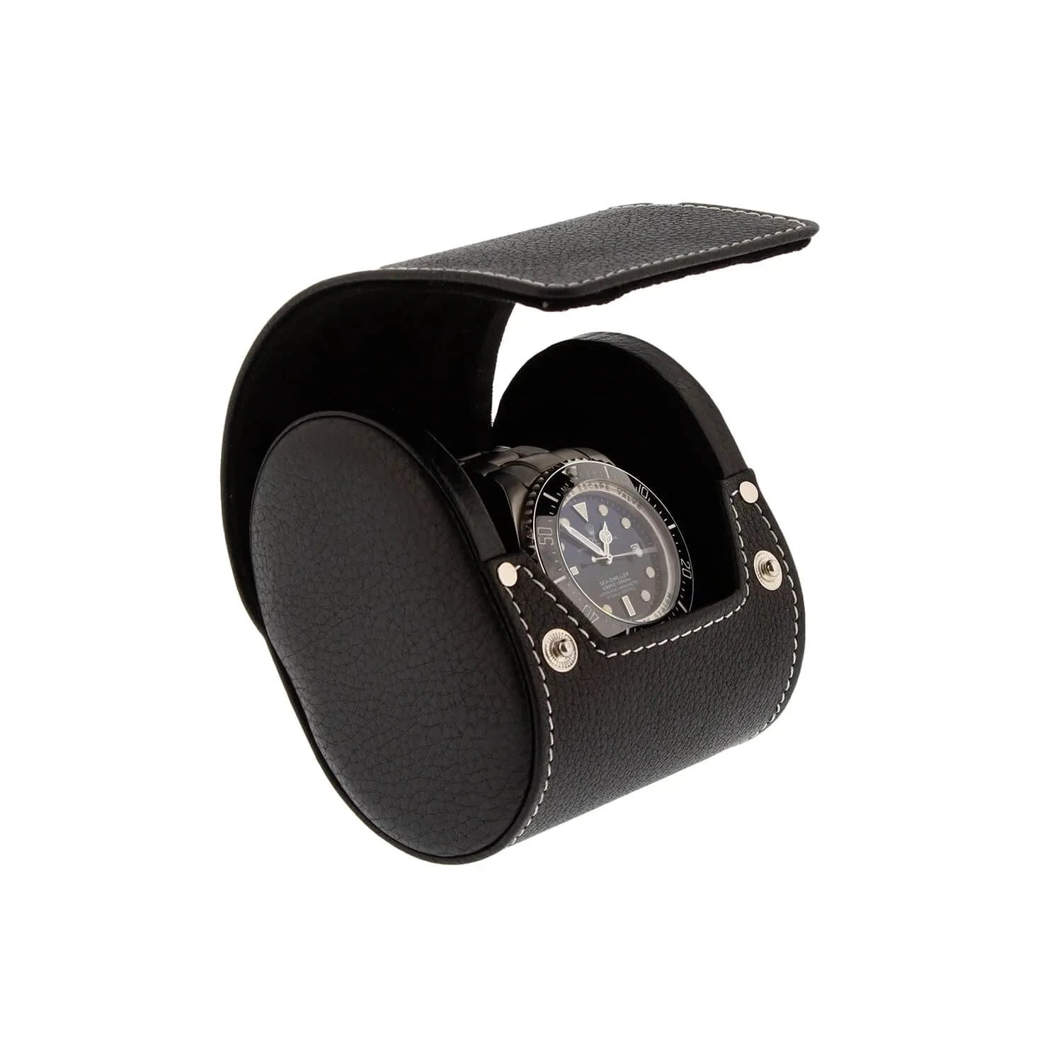 Black Genuine Leather Single Watch Roll Travel Case by Aevitas